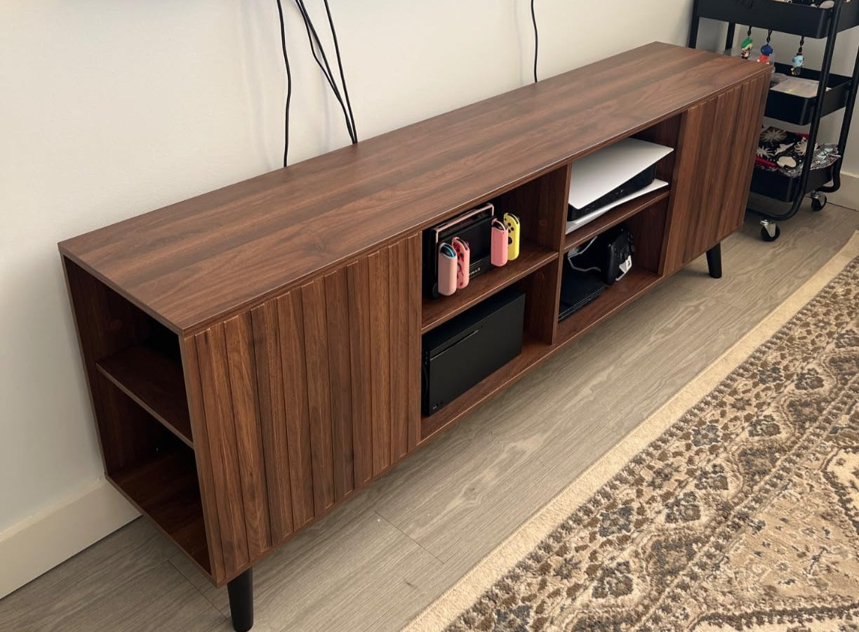 Giulia loves her new TV stand! It fits her aesthetic beautifully and is easy to assemble. The unique open-sided design took some getting used to, but it’s a great addition to her narrow apartment. A high-quality piece for the price.