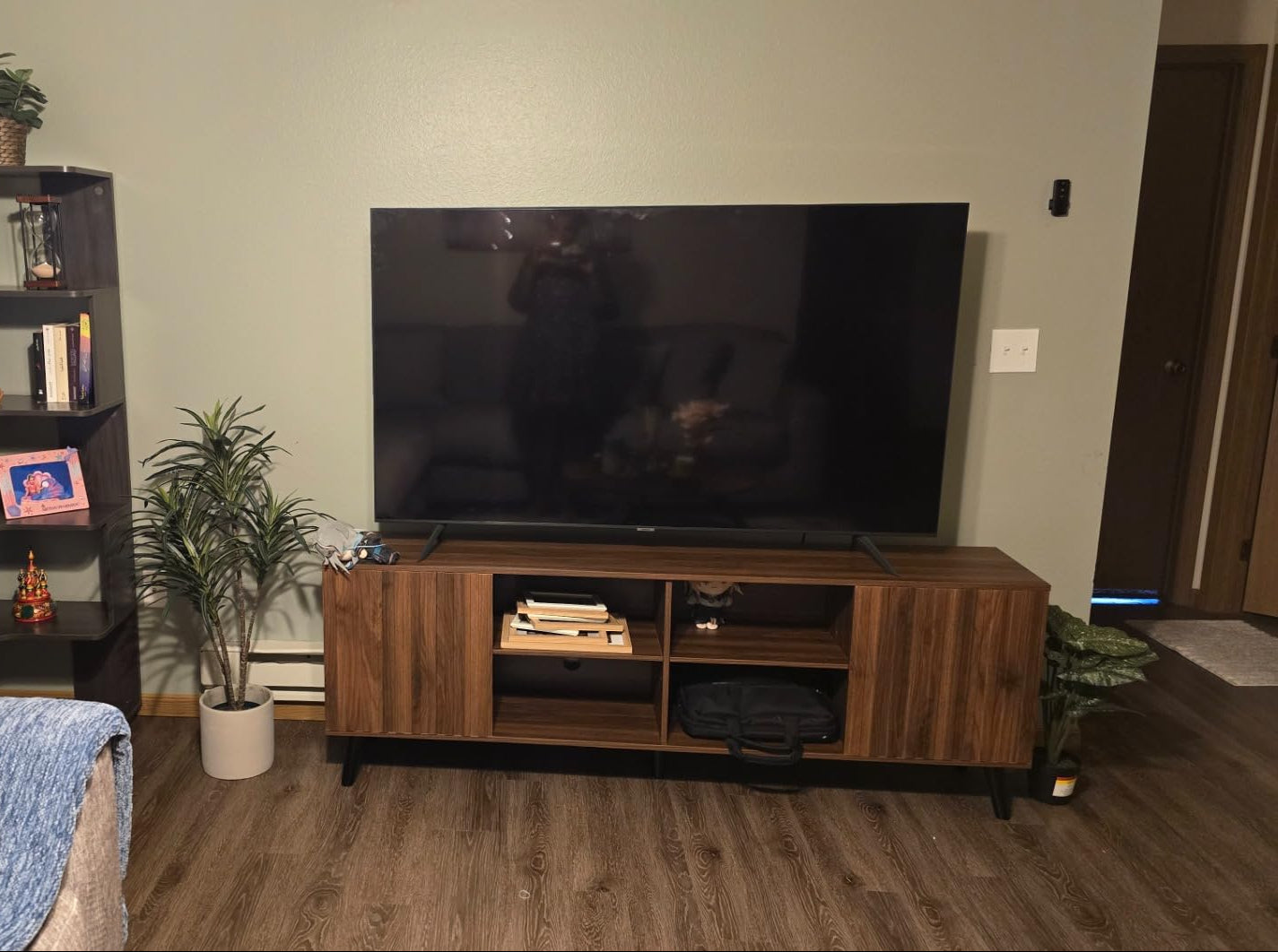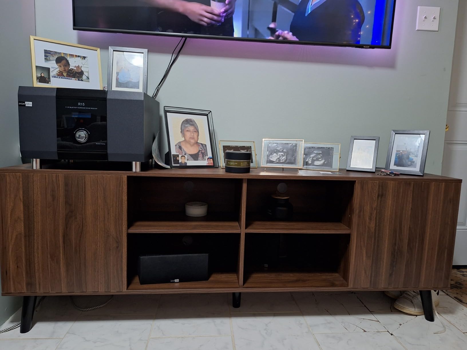 Jaime is thrilled with this TV stand's perfect size and fit for their living room! With compartments designed for maximum storage, it’s a fantastic option for families, offering style, practicality, and great value at an affordable price. Highly recommended!