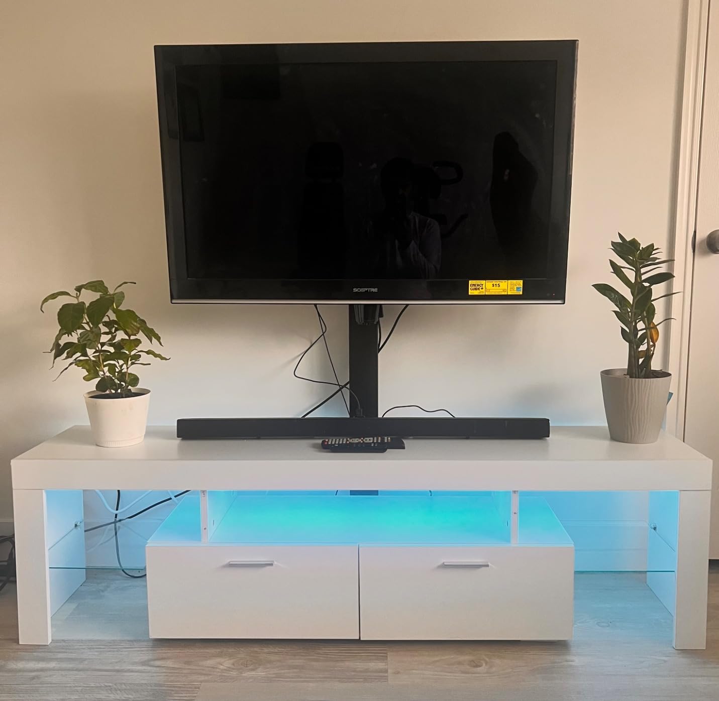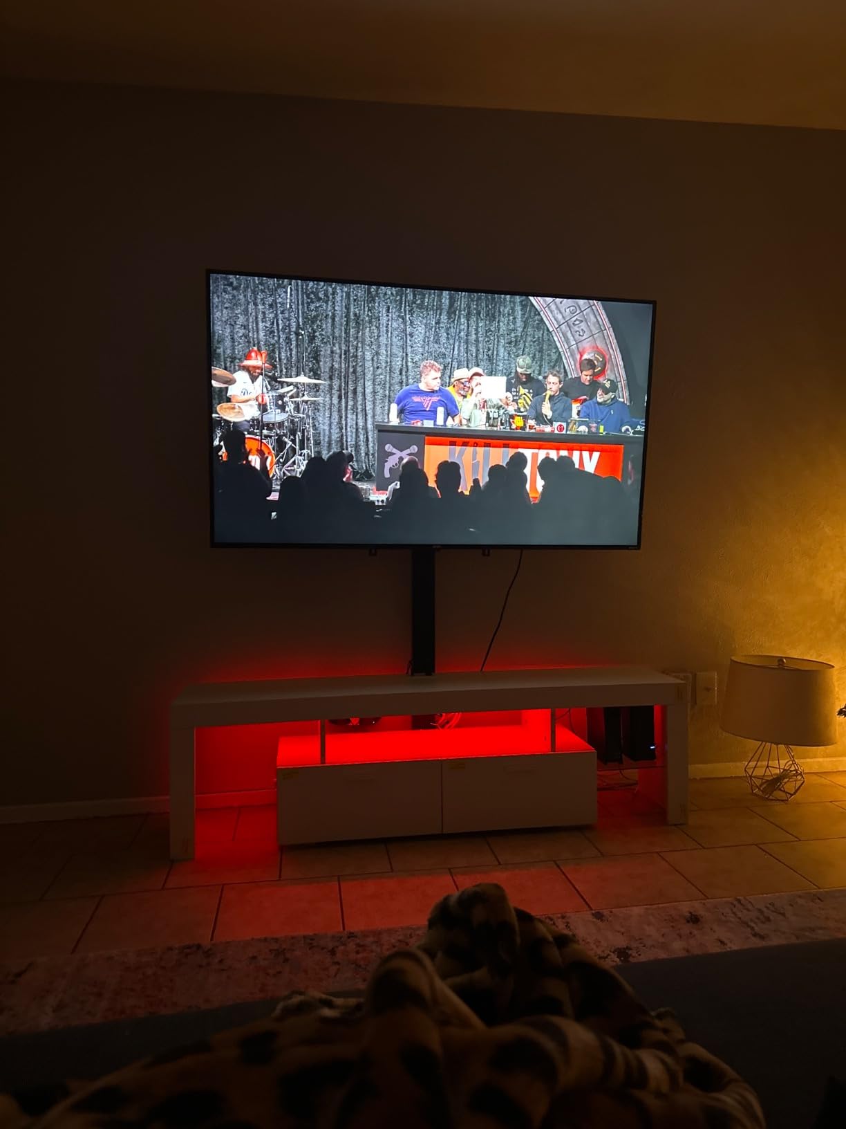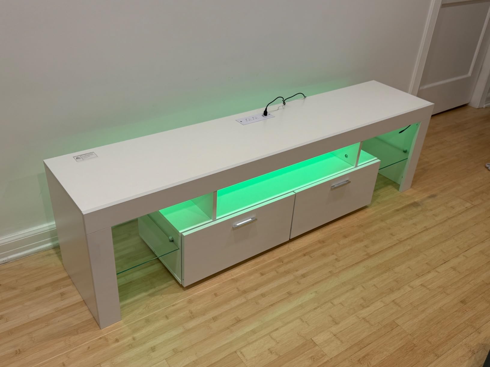 Nathan loves his TV stand! It’s durable, simple to assemble, and looks great with the added light strip. A fantastic deal for the price—highly recommended!